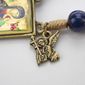 Terço Nossa Senhora Do Perpétuo Socorro Contas Em Madeira Azul 8 Mm Cordão Metais Em Ouro Velho I Resina Aproximadamente 43cm