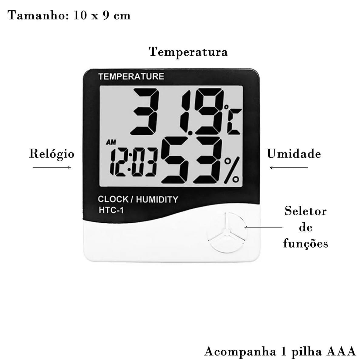 Termo Higrômetro Digital Temperatura, Umidade Do Ar E Relogio