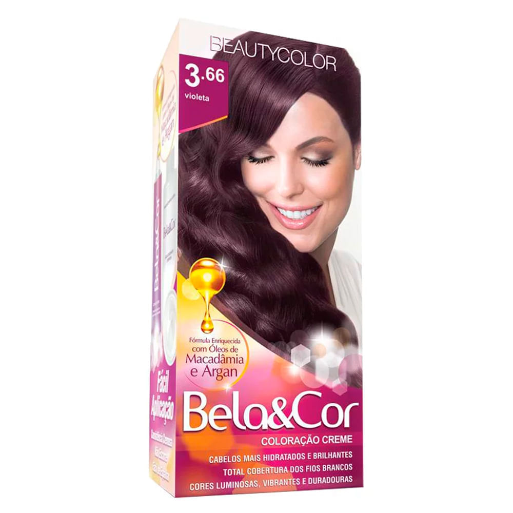 A Tintura Bela&cor Violeta 3.66 É Ideal Para Quem Busca Cabelos Radiantes, Isso Porque Possui Uma Formula Com Ativos Que Proporciona A Cobertura Completa Dos Fios Brancos Tonificando Profundamente, Hidratando E Promovendo Brilho.