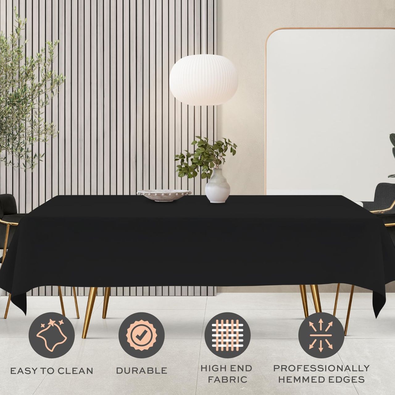 - Material De Alta Qualidade: Feito De 100% Poliéster. Tecido Grosso 180gsm Não Transparente, Que É Mais Fácil De Limpar E Durável Do Que A Maioria Das Roupas De Mesa Retangulares De Linho De Algodão, Oferecendo Mais Conveniência Para O Seu Uso E Limpeza. O Pacote Inclui 2 Toalhas De Mesa Pretas.