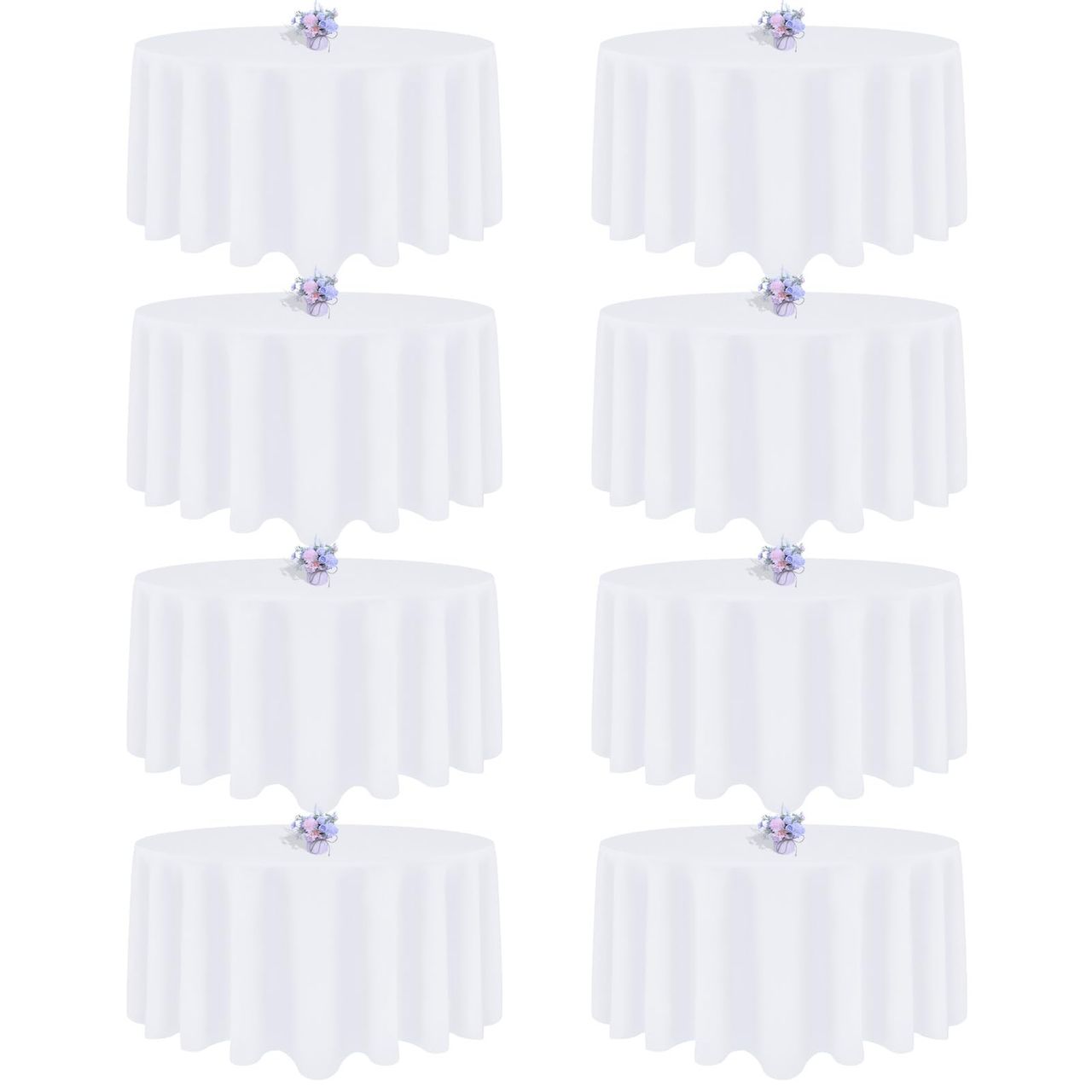 - 【material Alto】: Esta Toalha De Mesa Redonda Branca Vem Em 8 Pacotes É Feita De Poliéster, Garantindo Alta Qualidade E Durabilidade. Esta Capa Redonda De Toalha De Mesa Branca Também Tem Um Toque Suave Como Uma Mistura De Algodão, Para Dar A Você Uma Experiência De Jantar Confortável E Elegante.