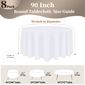 - 【escolha De Tamanho】esta Toalha De Mesa Redonda Para Mesas Redondas De Diâmetro É De 224 Cm, É Adequada Para Mesas Redondas Padrão De 1,8 M, Oferece Queda De 23 Cm, Adequada Para Aproximadamente 6 A 8 Pessoas. Certifique-se De Seguir Nosso Guia De Tamanhos De Toalha De Mesa Em Detalhes E Escolha O Tamanho Da Toalha De Mesa Branca Redonda Antes De Comprá-la.