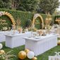 - 5. Adiciona Elegância Às Mesas De 1,8 M: Esta Toalha De Mesa Elástica Com Saia Mostra Pregas Para Deixar Sua Mesa Mais Elegante.