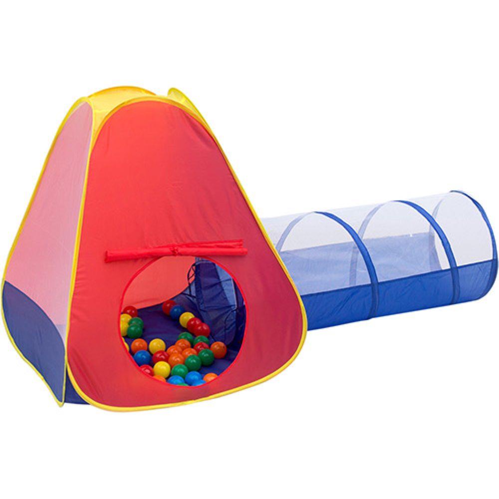 BrinquedosToca e Barraca InfantilToca 2 Em 1 Com Tunel e 60 Bolinhas 4604 - Braskit