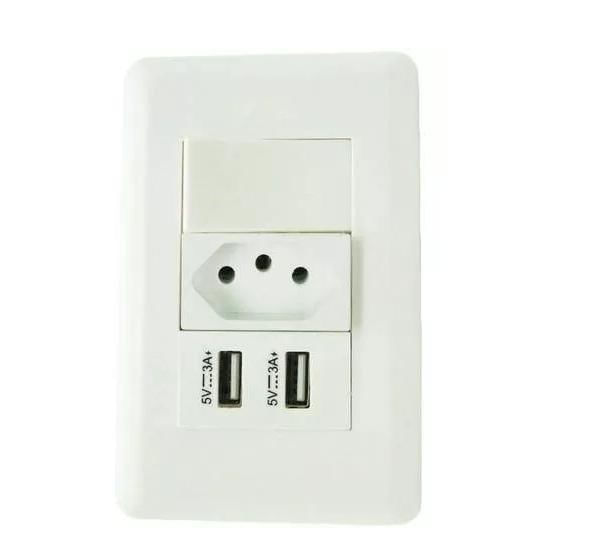 01 Tomada Com Interruptor E Duas Entradas Usb