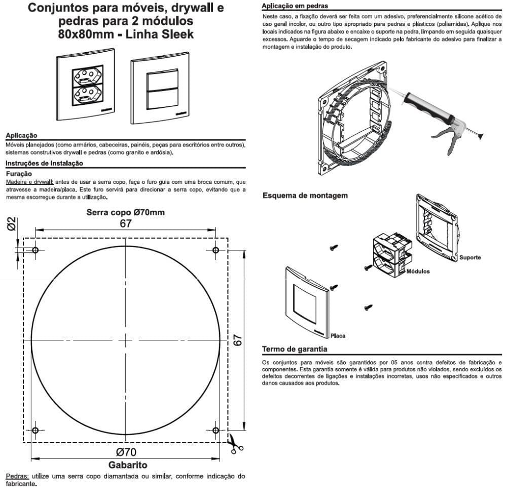 Tomada Para Embutir Em Madeira, Mdf, Mdp, Pedra, Marmore, Granito, Drywal Ou Derivados. Utilizada Principalmente Na Marcenaria, Ideais Para Peças Planejadas Como Armários, Cabeceiras, Painéis, Bancadas, Balcões De Cozinha, Mesas Para Escritório, Entre Outras1 Interruptor Paralelo 10a1 Tomada 3 Pinos (2p+t) 20a Ajuste Automático Para 10acomposição: Materiais Plásticos Isolantes (termoplásticos De Engenharia) E Ligas Metálicas Condutorascomprimento: 80mm / Largura: 80mm / Altura 36mmdiâmetro De Furanção: 70mm