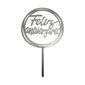 01 Un - Topper De Cake Feliz Aniversário Redondo. Cristal. Eixo Firme. Ref.: Ca-04.