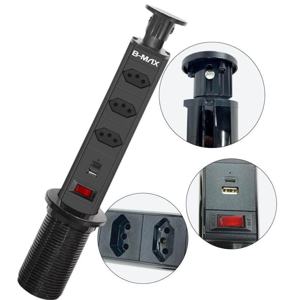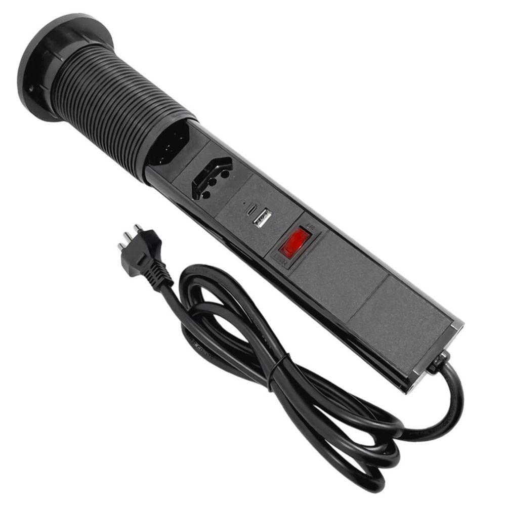 Torre Multiplug Usb 3 Tomadas Retrátil Usb-c E De Embutira Torre Tomada De Embutir Retrátil 20a 3 Tomadas É Uma Solução Moderna E Prática Para Ambientes Como Cozinhas, Escritórios E Salas De Reunião, Permitindo Acesso Rápido E Organizado A Múltiplas Fontes De Energia. Com Design Retrátil E Sistema Push To Open, A Torre Permanece Oculta Quando Não Está Em Uso, Integrando-se Perfeitamente Ao Ambiente. Além Das Três Tomadas De 20a, Conta Com Uma Entrada Usb 2.1a E Uma Entrada Tipo C, Proporcionando Praticidade Para Carregar Dispositivos Eletrônicos. O Produto Inclui Proteção Anti-choque, Especialmente Para Segurança De Crianças, E Seu Cabo De 1,8m Facilita A Instalação. Compatível Com Tensão Bivolt (110-250v), Esta Torre É Ideal Para Quem Busca Funcionalidade E Elegância Em Um Só Produto.informações Técnicas:aterramento: Sim, Padrão Aplicação: Interna Sistema Retrátil: Push To Open Total De Conexões: 4 Soquetes Especificações Das Conexões: 3 Tomadas De 20a 1 Entrada Usb 2.1a 1 Entrada Tipo C Tensão Nominal: 110-250v (bivolt) Corrente Nominal: 20a Comprimento Do Cabo: 1,8m Tipo De Conexões: Soldado-soldaitens Inclusos:1x Torre Tomada De Embutir Retrátil 20a 3 Tomadas [preto]informações Técnicas:aterramento Padrão Aplicação Interna Retrátil Push To Open 4 Soquetes 3 Tomadas 1 Entrada Usb 2.1a 1 Entrada Tipo C Tensão Nominal 110-250v [bivolt] Carga Nominal 2500w Corrente Nominal 10a Comprimento Do Cabo 1,8m Tipo De Conexões Soldado-soldaitens Inclusos:1x Torre Tomada De Embutir Retrátil [3 Tomadas]