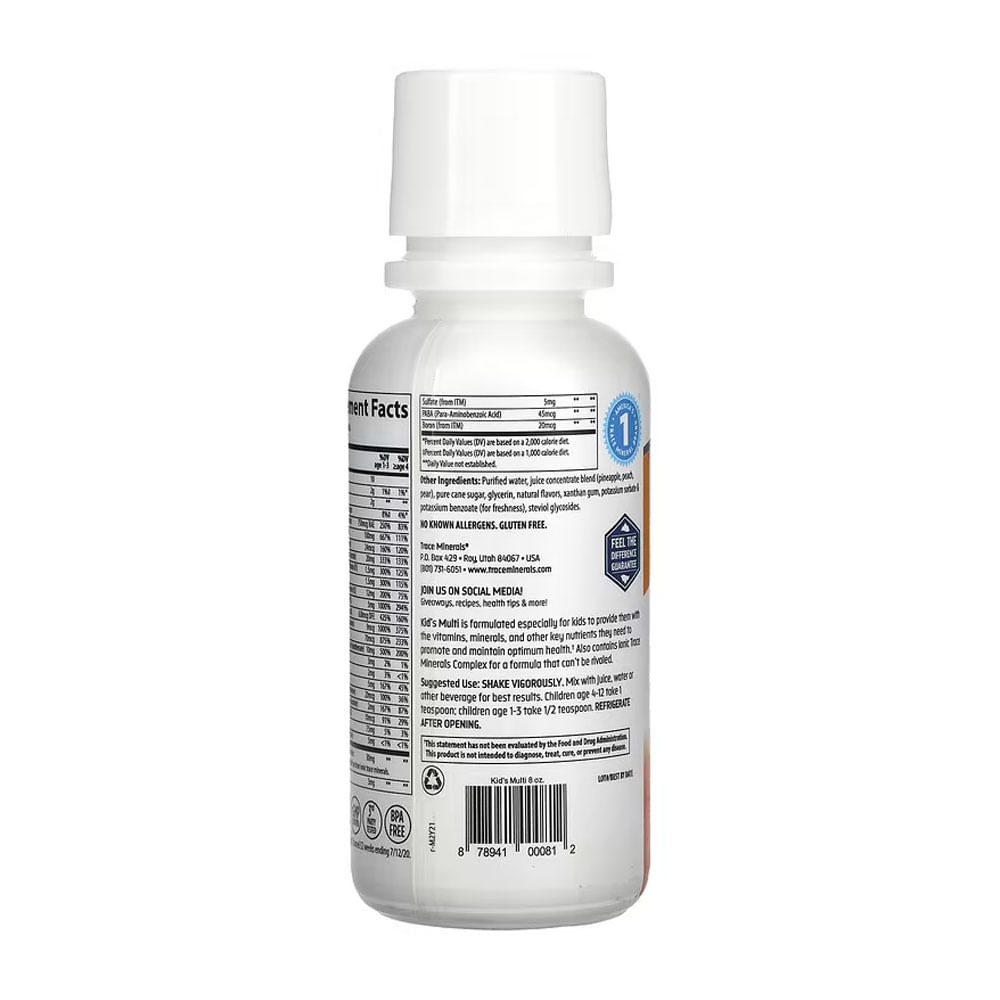 Trace Minerals Multivitamina E Multimineral Criança 237ml Sabor Cítrico Punch Produto Importado 1. Suporte Nutricional Integral Para Crianças: Este Suplemento Oferece Um Suporte Nutricional Abrangente Para Crianças, Combinando Multivitaminas E Multiminerais Essenciais Para O Desenvolvimento E Crescimento. 2. Apresentação Líquida De Fácil Ingestão: Sua Forma Líquida Com Sabor Cítrico Punch É Atraente E Fácil De Ingerir, Tornando-se Uma Opção Conveniente E Agradável Para Crianças Que Podem Resistir A Comprimidos Ou Cápsulas. 3. Produto Importado De Alta Qualidade: Este Suplemento É Importado, Assegurando Alta Qualidade. Disponível A Pronta Entrega, Oferece Uma Opção Confiável Para Suprir As Necessidades Nutricionais Das Crianças. 4. Facilmente Integrável À Rotina Diária: A Facilidade De Incorporar Este Suplemento Líquido Na Rotina Diária Das Crianças Torna A Manutenção De Uma Nutrição Adequada Simples E Prática. 5. Formulação Enriquecida Com Vitaminas E Minerais: Contém Uma Rica Combinação De Vitaminas E Minerais, Cuidadosamente Selecionados Para Atender Às Necessidades Nutricionais Das Crianças, Contribuindo Para O Seu Bem-estar Geral. Validade Longa