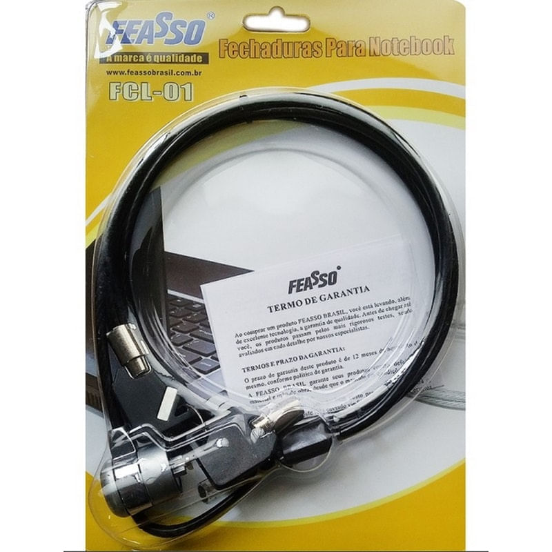 Confeccionado em aço super resistente.Fácil de usar, basta passar o cabo em algum objeto fixo e prender o cadeado no notebook.A chave somente será retirada quando a trava estiver trancada, evitando a perda da mesma..Material em aço, revestido com acabamento plástico