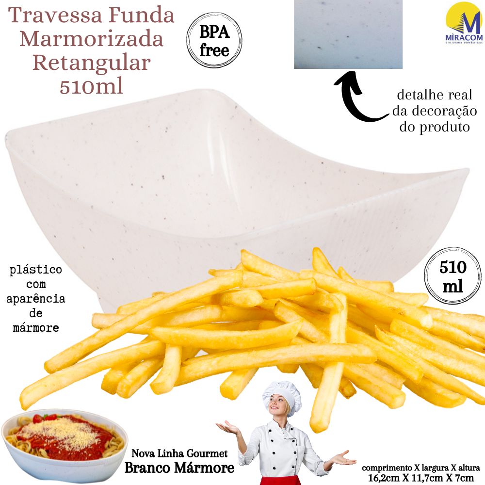 Este Produto Da Nova Linha Marmorizada Traz Um Toque peculiar, Estiloso E Moderno Aos Seus Utensílios De Servir. A Travessa Conta Com Um Espaço Generoso Para Servir Os Quitutes E Porções Menos Volumosos. O Produto É Fabricado Em Polipropileno Atóxico De Alta Densidade, Totalmente Seguro Para A Alimentação E Livre De Bpa Em Sua Composição. A Decoração No Fundo Do Produto É Permanente Devido À Tecnologia Intraimagem Aplicada Em Sua Fabricação, Que Não Permite Desbotamento E Mantém Os Detalhes Marmorizados Vivos Por Mais Tempo. A Travessa, Inclusive, Pode Ser Levada Com Segurança Tanto Ao Freezer Como Microondas, Sem Comprometimento Da Integridade Do Material E Tampouco Da Saúde De Quem Nele Se Serve. O Produto Suporta Temperaturas Extremas Variantes Entre -10º E 120º, Embora Não Possa Ser Levado Ao Forno Convencional.