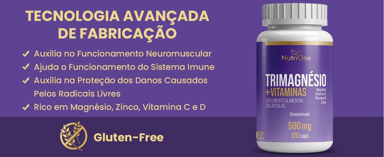 Trimagnésio (malato, Taurato E Quelato) + Zinco, Vitamina C E D, 120 Cápsulas - Nutrione