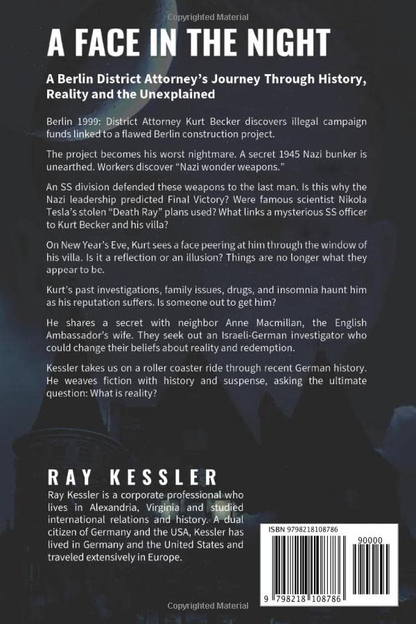 Em Seu Notável Romance De Estreia, Ray Kessler Leva O Leitor A Uma Montanha-russa Pela História Recente Da Alemanha. Ele Se Move Magistralmente Entre As Linhas Do Tempo Do Passado E Do Presente, Tecendo Eventos Fictícios Com Fatos Históricos. Kessler Cria Um Conto De Mistério, Intriga E Suspense Com Uma Possível Reviravolta Paranormal.ambientado Em Berlim Em 2000 E Durante A Batalha De Berlim Em 1945, O Protagonista Principal Do Romance, O Procurador Distrital De Berlim Kurt Becker, Vê Um Rosto Na Noite. O Rosto Continua Reaparecendo, E Ele Pensa Que Está Alucinando.sua Vida E Carreira Sofrem Um Novo Desvio Inesperado Quando Ele Descobre Fundos De Campanha Ilegais Ligados A Um Projeto De Construção De Berlim Falho. O Projeto Se Torna Seu Pior Pesadelo. A Escavação Do Local Descobre Um Bunker Nazista Secreto E Uma Operação Da Ss. Então, Os Trabalhadores Descobrem Armas Maravilhas Nazistas.uma Divisão Da Ss Defendeu Essas Armas Até O Último Homem. Foi Por Isso Que A Liderança Nazista Previu Uma Vitória Final? Os Planos Roubados De Raio Da Morte Do Famoso Cientista Nikola Tesla Foram Usados? O Que Liga Um Misterioso Oficial Da Ss A Kurt E Sua Vila? À Medida Que As Investigações Passadas De Kurt, Problemas Familiares, Abuso De Substâncias E Insônia O Assombram, Sua Vida Se Desenrola. As Coisas Não São Mais O Que Parecem Ser E Pioram Quando Os Políticos Tentam Culpá-lo Pelo Escândalo De Financiamento De Campanha. Alguém Está Fora Para Pegá-lo?kurt Becker Nasceu De Pais Eugenistas Alemães Que Ele Nunca Conheceu. Ele Ainda Sofre Do Trauma De Ser Órfão. Ele Está Tomando Antidepressivos E, À Medida Que Seu Casamento Se Deteriora, Ele Busca Consolo Com Sua Solitária Vizinha Inglesa Anne Macmillan, Esposa Do Embaixador Inglês Na Alemanha. A Rica Herdeira Inglesa É O Ún
