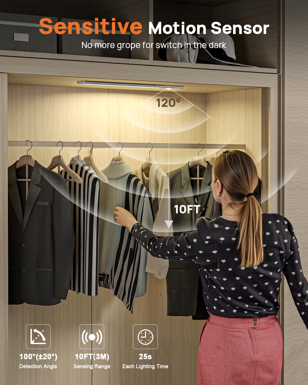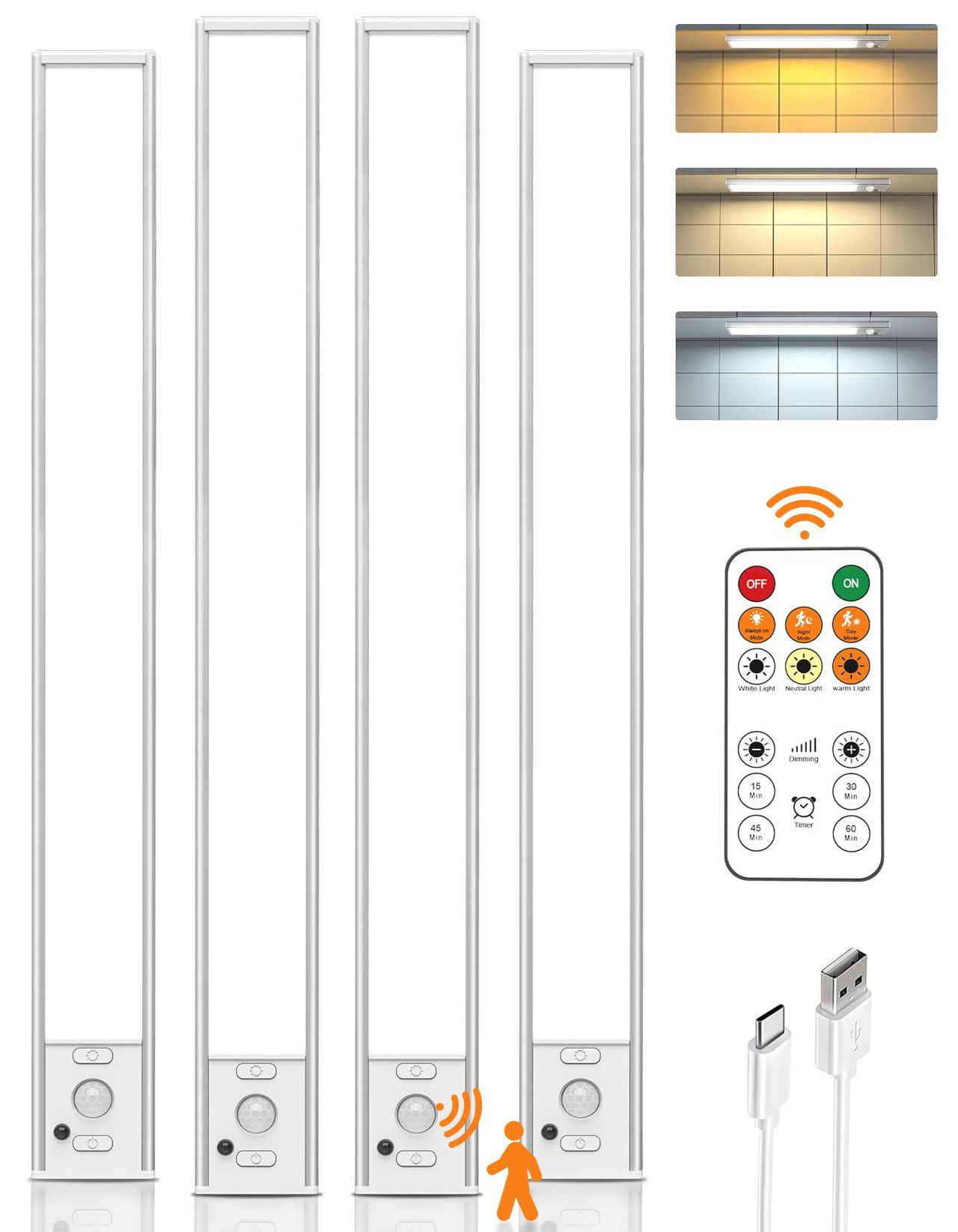 80 Leds: A Iluminação Do Armário De Iluminação Inferior Inclui 80 Contas De Led Que Emitem 500 Lúmens De Luz Branca Difusa Suave. Fornece Luz Suficiente Para Iluminar Todos Os Cantos Escuros. Três Modos Com Controle Remoto: Modo Sempre Ligado, Modo Sensor De Movimento, Modo Desligado. Modo Sempre Ligado: A Luz Do Armário Fornecerá Destaque Onde E Quando Você Precisar. Você Pode Usá-lo No Modo De Sensor De Movimento Diurno Ou Noturno: A Luz Noturna Do Sensor De Movimento Acenderá Automaticamente Quando O Movimento Humano For Detectado Dentro De 120° E 10 Pés E Desliga Automaticamente Após Cerca De 25 Segundos Sem Movimento Detectado. Não Precisa Mais Se Preocupar Em Tropeçar No Degrau No Escuro Tentando Ligar O Interruptor. Nota: Este Recurso Só Funciona Em Ambientes Escuros Ou Com Pouca Luz. Brilho Ajustável: Você Também Pode Ajustar O Brilho De 10% A 100% Pressionando O Botão No Controle Remoto, Que Pode Ser Operado Dentro De 5 Metros. Bateria Recarregável: Bateria Recarregável Embutida De 4000 Mah E Porta De Carregamento Usb-c Conveniente. Sem Substituição De Bateria. Sem Fiação Ou Perfuração. Mais Fácil De Instalar Do Que Um Soquete De Luz: 2 Formas De Instalação: Através De Ímãs Embutidos Ou Placas De Metal Adesivas, Você Pode Montá-las Sob O Armário Sem Fio Em Superfícies De Ferro E Outras Superfícies Limpas E Planas. - 【maior Brilho E Brilho Ajustável De 6 Níveis】cada Iluminação Sob Armário De 40 Cm É Equipada Com 80 Leds De Alto Brilho, Atingindo Um Brilho Máximo De 500 Lúmens, Que Tem Brilho Duplo Tanto Quanto As Luzes De Armário De Outras Marcas. A Luz Do Sensor De Movimento Interna É Forte, Mas Macia, Garantindo Que Não Seja Agressiva Para Os Olhos. Você Também Pode Ajustar O Brilho De 10% A 100% Em 6 Brilhos Reguláveis Com O Controle Remoto, Que Pode Ser Operado Em Até 5 Metros. Seja Para Cozinhas, Quartos Ou Até Mesmo Pequenas Áreas Como Gavetas E Guarda-roupas, Esta Luz De Armário Operada Por Bateria É Uma Excelente Escolha. - 【bateria Recarregável Usb 4000mah Maior】a Bateria Recarregável De 4000 Mah Pode Durar De 50 A 70 Dias Com Uma Frequência De Iluminação De 20 Vezes Ao Dia Por 25 S Cada No Modo Auto, E Pode Permanecer Iluminada Por 10 A 11 Horas Com O Brilho Máximo No Modo Sempre Ligado. As Luzes Sob Balcão Utilizam Baterias De Polímero De Lítio Grau A+ Com Alta Densidade De Energia E Longa Vida Útil. (observação: Carregue Antes Do Primeiro Uso.) - 【sensor De Movimento Inteligente E 3 Modos De Funcionamento Automático】a Luz Interna Do Sensor De Movimento De 16 Polegadas Acenderá Automaticamente Quando O Movimento Estiver Dentro De Uma Faixa De 120°. No Modo Diurno, As Luzes Embaixo Do Armário Acendem Sempre Que Movimento É Detectado, Não Importa Se É Dia Ou Noite, [modo Noturno] Ativa Sob Luzes Do Balcão Apenas Em Ambientes Escuros, [sempre No Modo], A Luz Do Armário Permanecerá Acesa O Tempo Todo. E Desliga Automaticamente Após Cerca De 25 Segundos Sem Movimento Detectado Para Conservação De Energia. - 【controle Remoto Sem Fio E 3 Cores Reguláveis E Temporizador】esta Luz De Armário Vem Com Controle Remoto Dentro De 5 Metros, Permitindo Que Você Use Facilmente E Sem Esforço. Estas Luzes Led Recarregáveis Sob O Armário Têm 3 Cores Reguláveis De Temperatura, Incluindo Branco Quente, Branco Natural E Branco Frio De 2700k-6000k. Nossos Sensores De Movimento De Luz De Guarda-roupa Também Oferecem 4 Configurações De Tempo De 15 Min/30 Min/45 Min/60 Min. Seja Para Iluminação Doméstica Ou Uso Comercial, Esta Luminária Sob Armário É A Escolha Ideal Para Melhorar O Conforto E A Conveniência. - 【fácil Instalação E Amplo Uso】: Com Ímãs Fortes Embutidos, Esta Luz De Movimento Interna De 40,6 Cm É Fácil De Instalar, Sem Necessidade De Um Eletricista. Pode Ser Absorvido Diretamente Em Superfícies De Ferro. Ou Use As Placas De Metal Adesivas Incluídas Para Colar Em Qualquer Lugar Que Você Quiser. Isso Também Significa Que É Fácil De Tirar E Colocar De Volta Quando Precisar De Uma Carga. Ótimas Luzes Sob O Armário Para Cozinha, Armário, Oficina, Garagem, Armário, Despensa, Porão, Escada, Corredor, Estante, Etc. - 【presente Perfeito E Suporte De Garantia】a Embalagem Requintada É Uma Ótima Opção Para Presentes, Perfeita Para Sua Esposa, Marido E Mãe. Se A Luz Do Armário Chegar Danificada Ou Se Houver Algum Problema De Qualidade, Entre Em Contato Conosco Diretamente E Forneceremos Uma Solução Satisfatória. Nós Realmente Nos Preocupamos Com A Experiência De Compra De Todos Os Clientes!