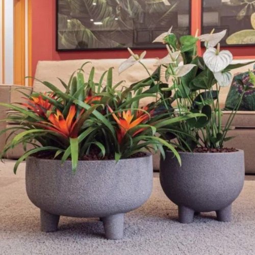 O lançamento do vaso redondo rústico com pés é uma ótima opção para quem busca