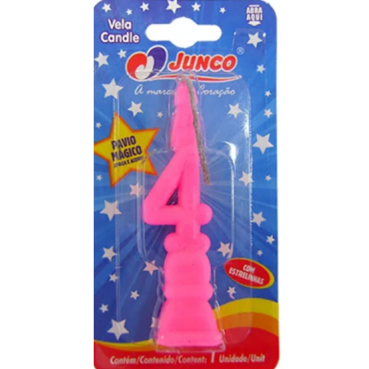 A Vela De Aniversário Número 4 Rosa Junco participa dos momentos especiais e alegra ainda mais o momento do parabéns.