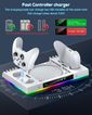 - 【suporte Multifuncional Para Xbox Series X】---- O Suporte De Carregamento Do Ventilador De Resfriamento Para Xbox Series X Combina As Funções De Ventilador De Resfriamento De Console, Carregador De Controle Duplo, Modo De 15 Luzes Rgb, 2 Baterias Recarregáveis De 1400 Mah, 8 Compartimentos Para Cartões De Jogo, 2 Compartimentos Para Cartões De Expansão, Gancho De Fone De Ouvido, Porta Usb Extra, Etc., O Que Economiza Muito Espaço Para Equipamentos De Jogos, Design Integrado Perfeito Para Fornecer Todos Os Recursos Extras Que Você Precisa. (incluído: 1 Suporte De Carregamento Rgb, 1 Gancho De Fone De Ouvido, 2 Baterias, 1 Manual De Uso)