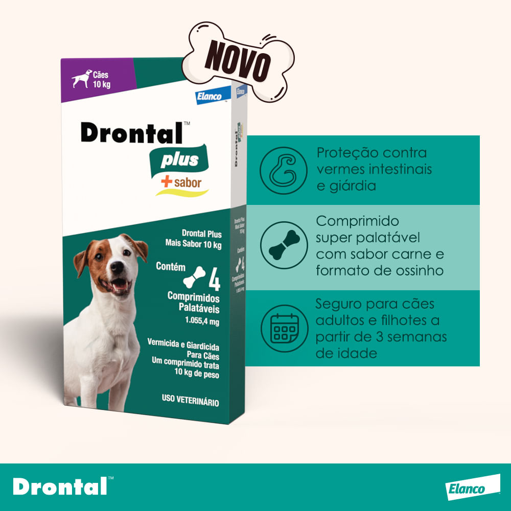 Vermífugo Drontal Plus Cães 10kg C/ 4 Comprimidoso Vermífugo Drontal Plus É A Proteção Eficaz Contra Vermes E Giárdiadrontal Plus Elimina Vermes Redondos E Chatos , Tem Alta Eficácia Contra Giárdia.drontal Plus Sabor Carne É Especialmente Indicado Para O Tratamento E Controle Das Verminoses Intestinais E Da Giardíase Em Cães, Apresentando Excelente Atividade Contra Os Seguintes Parasitos: cestóides (vermes Chatos): Taenia Multiceps, Taenia Pisiformis, Dipylidium Caninum, Taenia Ovis, Echinococcus Granulosus, Taenia Taeniaeformis, Echinococcus Multilocularis, Joyeuxiella Pasqualei, Mesocestoides Spp., Taenia Hydatigena.nematódeos (vermes Redondos): Ancylostoma Braziliense, Ancylostoma Caninum, Toxocara Canis, Toxascaris Leonina, Trichuris Vulpis, Uncinaria Stenocephala.protozoários: Giardia Spp. modo De Usardrontal Plus Sabor Carne Possui Moderno Componente Palatabilizante Que Facilita A Aceitação Do Comprimido Pelos Animais. Caso Necessário, Os Comprimidos Podem Ser