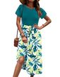 - 【característica】: Vestidos De Manga Curta Com Cor Lisa Da Blusa E Bainha Floral, Gola Redonda, Mangas Curtas De Pétala, 2 Bolsos Laterais, Vestido Com Cinto, Sem Forro, Corte Elegante, Comprimento Abaixo Do Joelho, Estilo Evasê, O Tecido Não É Fino Nem Grosso. Dá A Você Um Visual Casual E Elegante Enquanto Permanece Fresco E Confortável.