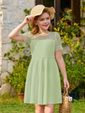 Vestido Haloumoning Girls, Malha Contrastante, Manga Folhada, Verde Claro