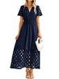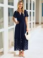 - Vestido Maxi De Renda – Este Vestido Maxi De Verão Apresenta Vestido Justo, Vestido De Cintura Império, Vestido De Gola V, Vestido De Manga Curta, Vestido Rodado, Vestido Em Camadas, Um Vestido Longo Em Forma De Linha O Torna Adequado Para Todos Os Tipos De Corpo E Dá Um Visual Modesto. Emenda De Renda Vazada Também Como Vestido De Férias
