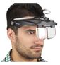 • A Viseira MAGNIVISOR permite você ver tudo ampliado sem ter de segurar nada.• Observe os detalhes de objetos tendo as mãos livres para manipula-los à vontade.• Basta encaixar uma das quatro lentes fornecidas e colocar a viseira na cabeça.• E ajustar a correia no tamanho desejado.• Quando quiser ver ao natural basta levantar a viseira .• Com uma lâmpada LED a visibilidade fica ainda mais clara e brilhante..• A lâmpada LED pode ser removida e utilizada como fonte de luz independente .• Sua estrutura possui ímã assim pode ser fixada em superfícies metálicas .• As 4 lentes são intercambiáveis, de alta qualidade e com diferentes ampliações: 1,5x, 2x, 2,5x e 3x para uso de acordo com a necessidade.• Esta viseira é perfeita todos os hobbies e artesanatos.• Extremamente útil na leitura de letras miúdas, inspeção de joias, soldagem de componentes em placas de circuito, e muito mais.• Alimentação da lâmpada: 3 pilhas AAA não fornecidas.• Acompanha estojo de acondicionamento das lentes