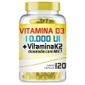 Vitamina D3 10.000Ui + Vitamina K2 100Mcg Com 120 Cápsulas..Produto dispensado de registro conforme RDC 240/2018..Vitamina D3 + Vitamina K2 doseada com MK-7..O que é.Vitamina K2 doseada com MK-7 é uma vitamina totalmente natural e altamente biodisponível, associado a Vitamina D3, são essenciais para uma adequada mineralização óssea e regulação dos níveis de cálcio no interior das artérias...Como age.Vitamina K2 é a forma mais biodisponível e mais bioativa da vitamina K. É essencial para o corpo absorver o cálcio, para construção de ossos fortes, saudáveis e para inibir os depósitos de cálcio nas artérias..É uma vitamina considerada vital para o corpo por regular adequadamente e ativar proteínas importantes, tais como fatores de coagulação no fígado, Matrix Gla Proteínas, encontradas nas artérias, e osteocalcina nos ossos. A Vitamina K ocorre em duas formas principais, a vitamina K1 (filoquinona) e vitamina K2 (menaquinona). A Vitamina K1 ajuda na coagulação do sangue, já a Vitamina K2 ajuda a reduzir as placas de cálcio que se acumulam nas artérias além de orientar a absorção de cálcio para fortalecer os ossos...Vitamina D3: sua ação primordial no metabolismo do cálcio, através da promoção da absorção de cálcio e fósforo a partir do intestino e da reabsorção óssea de cálcio. No entanto, a vitamina D3 não se restringe apenas ao metabolismo fosfocálcio, a falta da Vitamina D3 pode causar diversos problemas de saúde como problemas cardíacos, diminuição do tônus muscular, várias doenças autoimunes, como diabetes mellitus insulino-dependente, esclerose múltipla, doença inflamatória intestinal, lúpus eritematoso sistêmico e artrite reumatoide...Recomendações e Beneficios:..- Saúde Óssea,.- Fortalecimento dos ossos,.- Coadjuvante e preventivo para o tratamento de osteoporose,.- Prevenção de problemas cardíacos,.- Regulação dos níveis de cálcio nos ossos e nas artérias,.- Promove a mineralização e fortalecimento ósseo,.- Benefícios vasculares,..Referências:.- Informativo técnico do fornecedor Infinity Pharma.