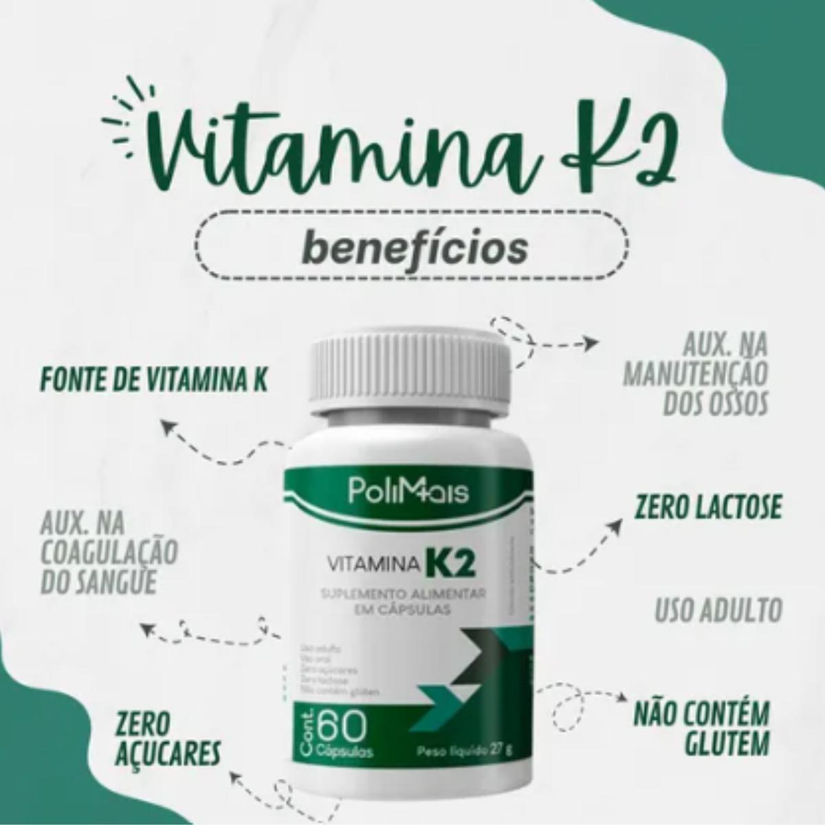 A Vitamina K2 Nutriex Polimais É Um Suplemento Essencial Para Quem Busca Ossos Fortes , Melhor Absorção Do Cálcio E Proteção Cardiovascular . Sua Principal Função É Direcionar O Cálcio Para Os Ossos E Dentes, Evitando O Acúmulo Inadequado Nas Artérias, O Que Contribui Para A Saúde Do Coração. Com 60 Cápsulas, O Produto Oferece Um Excelente Rendimento Para Uso Contínuo, Sendo Indicado Para Adultos Que Desejam Complementar A Alimentação E Manter O Equilíbrio Do Organismo, Especialmente Em Conjunto Com Cálcio E Vitamina D. Produzido Pela Nutriex / Polimais, Marca Reconhecida Pela Qualidade E Segurança, O Suplemento Segue Padrões Rigorosos De Fabricação.