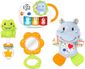 Dê ao Recém-Nascido Necessidades O Presente do Chuveiro Para começar o bebê com um conjunto de quatro brinquedos infantis imperdíveis. O piano eletrônico tem três teclas que introduzem cores, formas, números e animais e toca mais de 45 músicas, melodias, sons e frases. O hipopótamo de pelúcia é feito de tecido macio de várias texturas e padrões coloridos, desenvolvendo de forma brincalhão a consciência tátil do bebê. As pernas macias do hipopótamo são perfeitas para acalmar as gengivas doloridas. O chocalho de sapo tem uma alça de fácil compreensão e anéis de clacker que deslizam para frente e para trás, ajudando o bebê a fortalecer as habilidades motoras brutas. O bebê também pode jogar peek-a-boo no espelho de flores seguro para o bebê para desenvolver autoconsciência. Chega de saber o que dar de primeira mão! Está tudo bem aqui. Destinado a idades de nascimento+. Requer 3 baterias AAA. Baterias incluídas apenas para fins de demonstração. Novas baterias recomendadas para uso regular.