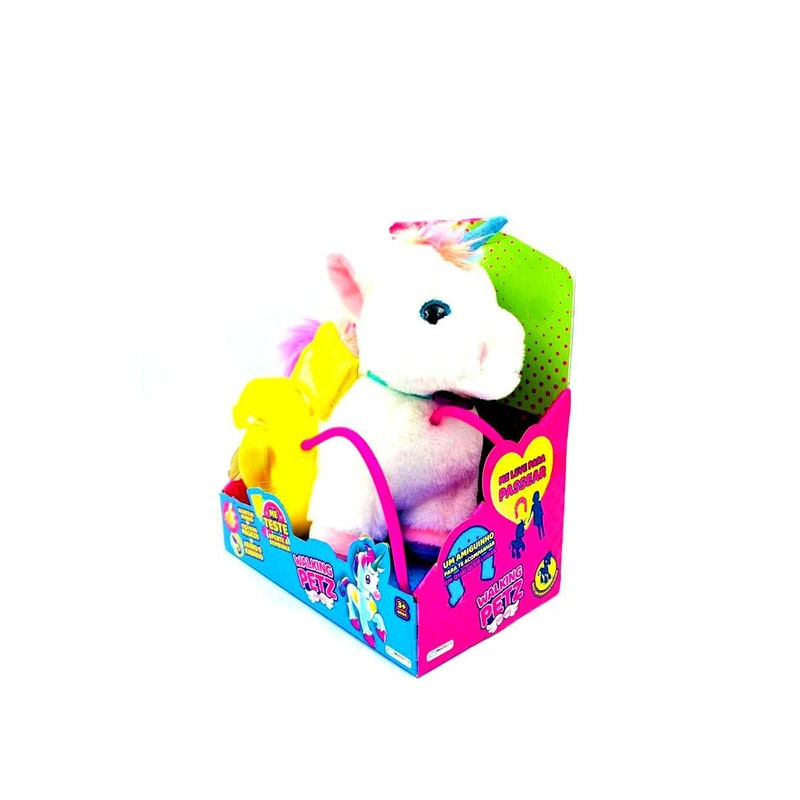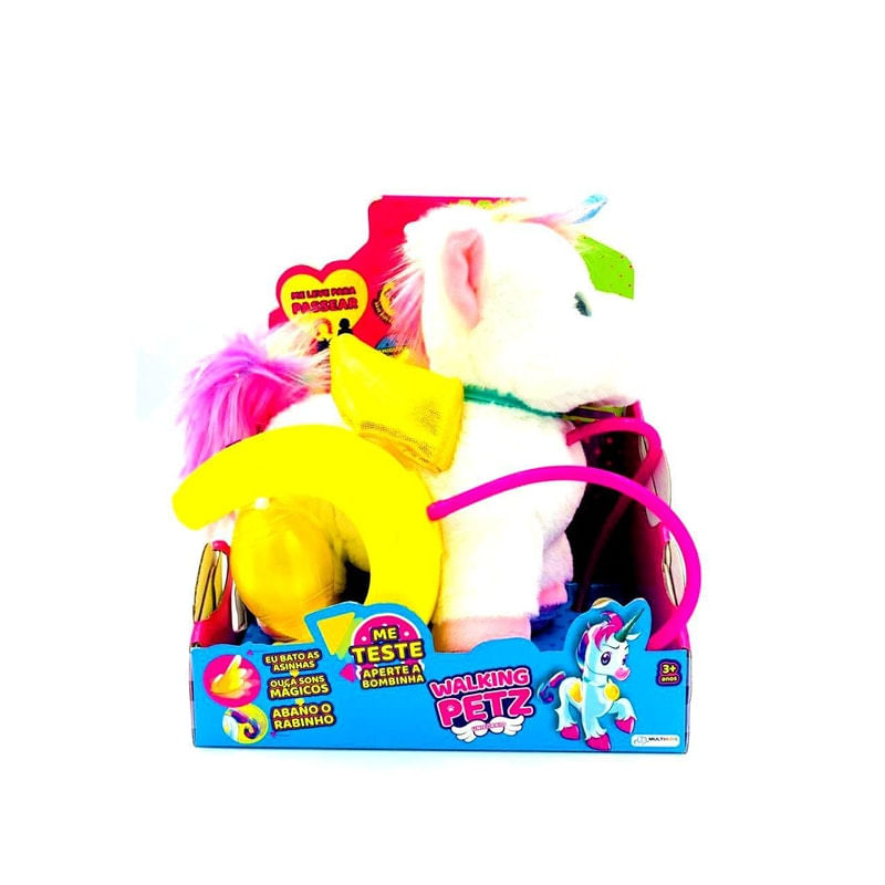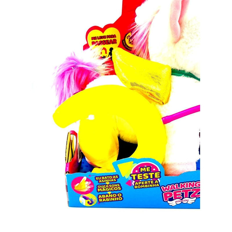 Walking petz unicórnio br1196 multilaser ..A linha de pelúcias walking petz multikids é perfeita para quem tem muito amor e carinho para compartilhar.. O unicórnio mais amado está pronto para ser adotado, receber seu carinho e todo o seu cuidado. .Dê a ele uma casinha para chamar de sua, uma caminha confortável e quentinha, uma barriguinha bem cheia para mantê-lo forte e saudável, além de claro, muito amor e atenção...Pets interativos que podem ser levados para qualquer lugar..Alimentação: 3 bateria lr44 inclusas..Interativo: abana o rabinho e as orelhinhas emitem sons e levantam..Base com rodinhas estáveis..Aperte a bomba de ar para eu abanar o meu rabinho e levantar as minhas asinhas..Idade recomendada: para crianças maiores de 3 anos de idade..Medidas: altura: 21cm..Certificado do INMETRO: CE BRI BRICS 0070618. marca:Multilaser