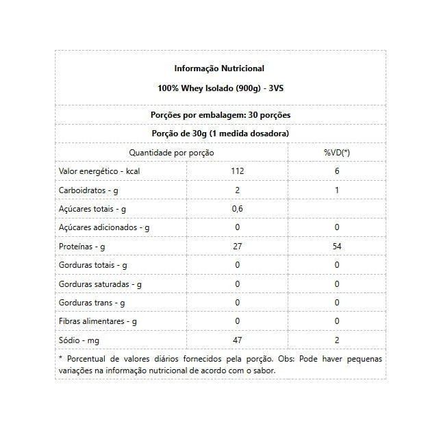 Whey Isolated (900g) o Que Tem No Scoop? whey Isolado Da 3vs Nutrition É Um Suplemento Feito Exclusivamente Com A Proteína De Soro Do Leite Isolada (wpi), Sem A Adição De Proteínas Com Valores Biológicos Menores, Dessa Forma Podemos Chamar De 100% Whey Protein Isolado. Adoçada Com Estévia É Uma Opção Altamente Benéfica Para Aqueles Que Buscam Maximizar Os Benefícios Da Proteína Do Soro Do Leite Com Maior Valor Biológico, Ao Mesmo Tempo Em Que Evitam O Uso De Açúcares E Adoçantes Artificiais. benefícios: - Até 27g De Proteína,- Zero Gordura,- Baixo Carbo,- Não Deixa Sabor Residual,- Sem Adoçantes Artificiais,- Adoçado Com Edulcorante Natural Estévia.