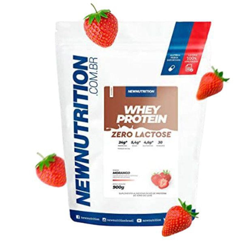 Whey Protein Zero Lactose Morango - 900G - Newnutrition..O que é whey zero lactose.Whey protein zero lactose - 900g é retirado do processo de filtração do soro do leite e sua lactose passa por um processo de quebra e é transformada em galactose e glicose que são nutrientes que não causam intolerância.. .Benefícios do whey protein zero lactose.. .Não possui lactose..Baixo teor de gorduras..Auxilia na manutenção e no aumento da massa muscular..Baixo carboidrato..Proteína de alto valor biológico..Fácil digestão.Fácil absorvição.. .Como tomar o whey protein zero lactose - 900g.Misturar 30g (2 medidores newnutrition) em 200ml de água. este produto destina-se a atletas e indivíduos acima de 19 anos. Este produto não é um medicamento. Não exceder a recomendação diária de consumo indicada na embalagem. Mantenha fora do alcance de crianças...Produto dispensado de Registro.