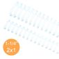 Wire-o Garra Duplo Anel 1.1/4 para 270 fls Carta 2x1 Branco 25 und A garra de duplo anel é a mais nova opção para encadernação. Permite um perfeito acabamento e transmite seriedade e profissionalismo ao seu trabalho. Possui o sistema de fornecimento em bobinas ou caixas, que garante economia e praticidade, conforme sua necessidade de trabalho. Consulte os nossos atendentes do AlvesVendas e encontre o que você precisa! As garras de duplo anel estão disponíveis nos modelos Ofício, A4, e Carta Valor do anúncio referente a 1 pacote (Garra duplo anel tamanho Carta) Veja mais tamanhos em nossos produtos anunciados. Passo: O passo é a medida que determina a quantidade de furos por cada polegada. Temos os passos 3x1, utilizado para encadernações até aproximadamente110 folhas e o passo 2x1, utilizado para Especificações técnicas: Diâmetro: 1’’ 1/4 Passo: 2x1 Folhas: 270 Diâmetro: 31.75 Caixa: 25 Anéis: 22 Itens Inclusos: 01 Caixa com 25 unidades de espirais de wire-o.