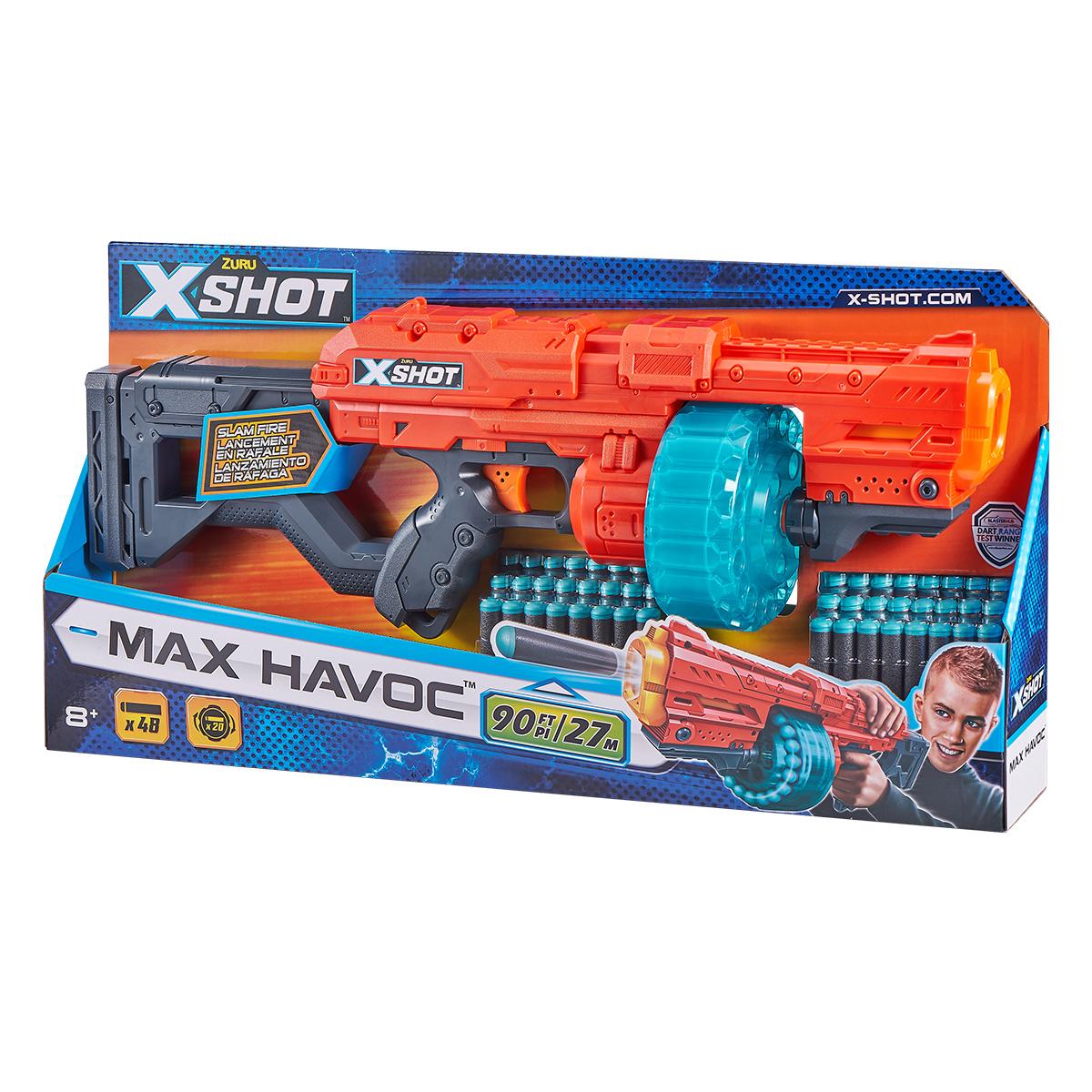 O novo lançador X-Shot Max Havoc é o que todo fã de lançadores sonhou! Este lançador é perfeito para divertidas aventuras! Ele tem a função de disparo único e um tambor giratório com capacidade de 20 dardos que alcança até 27 metros de distância com alta precisão! E quando a disputa ficar intensa, é só liberar o tambor rotativo com o seu mecanismo Slam Fire e derrotar o seu oponente! Com o lançador X-Shot Max Havoc a brincadeira vai ficar muito mais emocionante! Acompanha 48 dardos de espuma. Lançador compatível com os principais dardos do mercado.Resumindo:• O novo lançador X-Shot Max Havoc é o que todo fã de lançadores sonhou!• Este lançador é perfeito para divertidas aventuras!• Ele tem a função de disparo único e um tambor giratório com capacidade de 20 dardos que alcança até 27 metros de distância e alta precisão!• E quando a disputa ficar intensa, é só liberar o tambor rotativo com o seu mecanismo Slam Fire e derrotar o seu oponente!• Com o lançador X-Shot Max Havoc a brincadeira vai ficar muito mais emocionante!• Acompanha 48 dardos de espuma. O lançador compatível com os principais dardos do mercado.