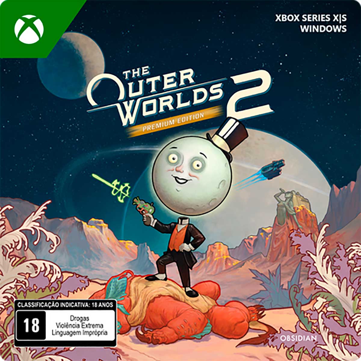 A Edição Premium de The Outer Worlds 2 inclui: O jogo The Outer Worlds 2 - Acesso antecipado de até 5 dias - Passe de DLC para 2 expansões futuras da história* - Pacote de Prêmios Premium de Apreciação Corporativa do Homem da Lua - Acesso ao livro de arte digital e à trilha sonora original de The Outer Worlds 2 *Expansões da história disponíveis assim que forem lançadas, confira em xbox.com/games/the-outer-worlds-2.